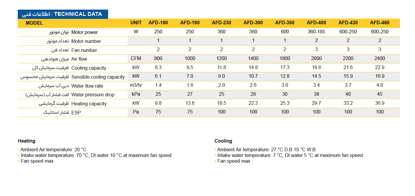 • کویل مسی با پره های آلومینیومی با پوشش بلوفین راندمان بالا